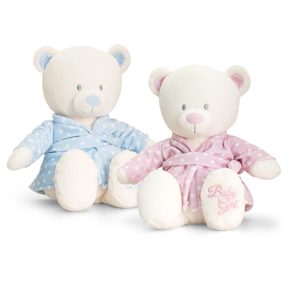 Parfait pour un câlin au coucher; cet ours de chambre de 25 cm est prêt pour le lit avec sa robe de chambre pastel. Un complément idéal à la crèche ou au berceau pour le compagnon de sommeil de bébé.