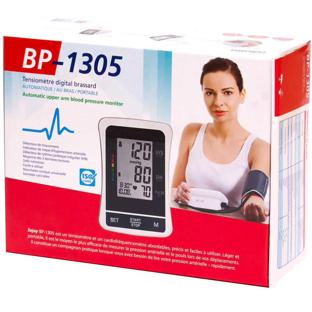 Le tensiomètre de bras automatique BP-1305 comprend un système intelligent pour détecter les arythmies, et un indicateur de niveau de l’hypertension. Il possède un brassard robuste grâce au tissu en nylon doublé solide qui permettra l’utilisation de ce tensiomètre pendant plusieurs années.
