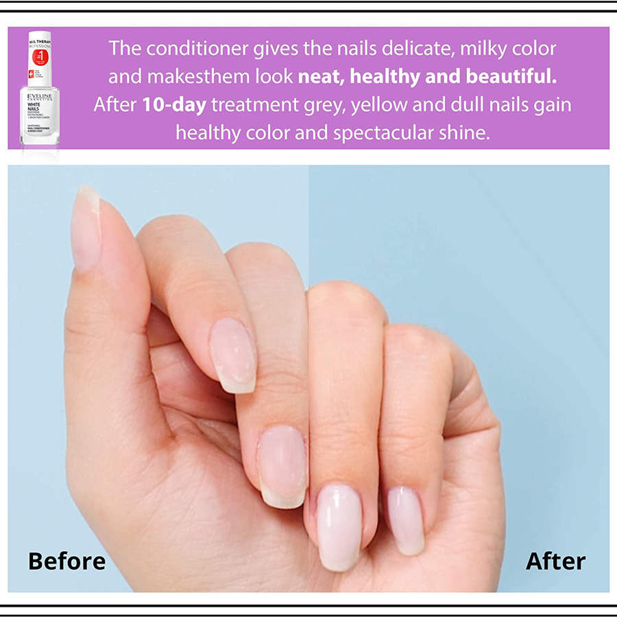 Le traitement blanchissant et lissant, grâce à l’extrait de citron et aux filtres UV, éclaircit les ongles et élimine toutes les décolorations dues à une sécheresse excessive de la plaque à ongles ou à une application prolongée de vernis de couleur. Utilisé comme base, il crée une couche protectrice empêchant l’ongle naturel de jaunir à répétition. Améliore la résistance à l’usure du poli, empêche l’écaillage et facilite le retrait. Recommandé pour une utilisation sous les vernis foncés et pailletés. Donne aux ongles une couleur laiteuse délicate et les rend propres et sains. Après 10 jours de traitement, les ongles gris, jaunes et ternes retrouvent une belle brillance. Ils ont l’air rajeuni et brillant.