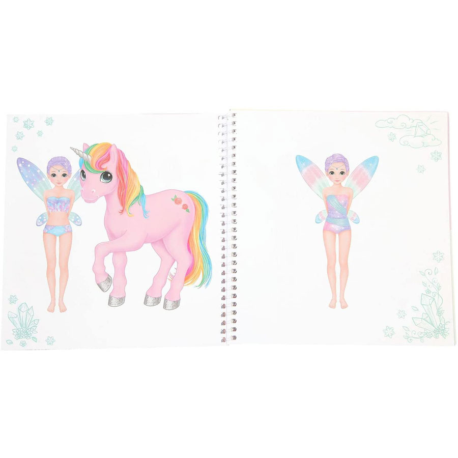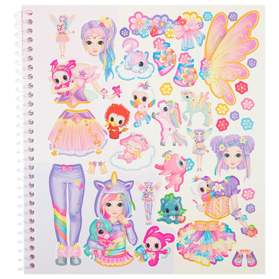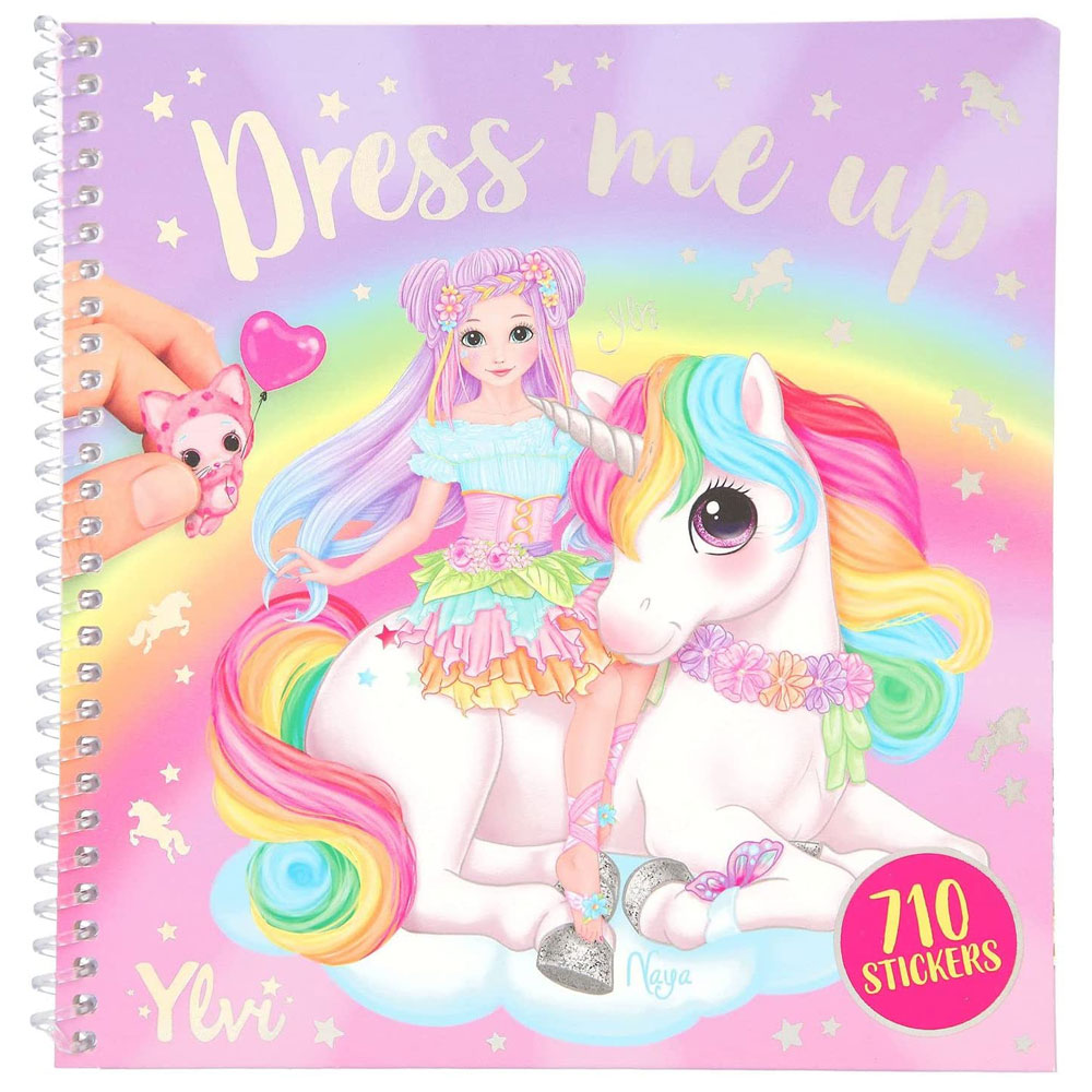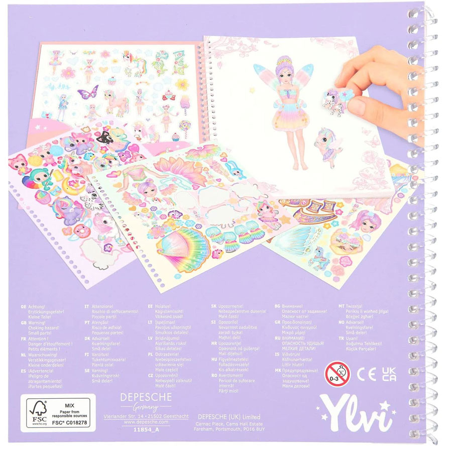 – 24 pages avec des images de la petite princesse Ylvi et de ses poneys magiques (licornes), qui peuvent être habillées avec des autocollants ;